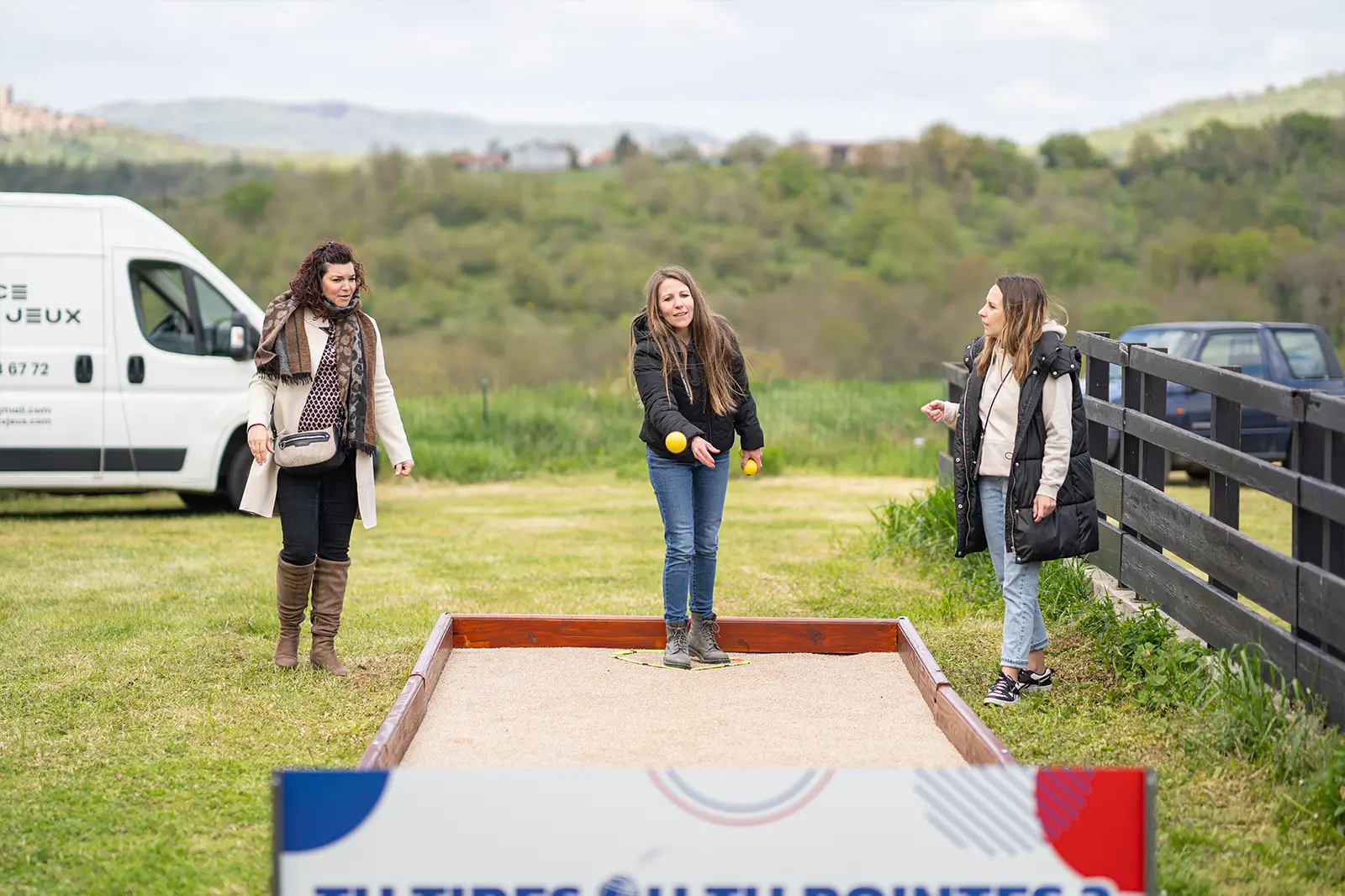 Le terrain de pétanque éphémère est adapté à tous les âges. Nous proposons des boules de tailles et poids différents pour les enfants et les adultes.